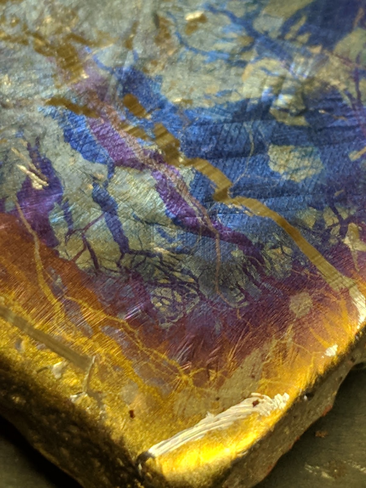 — mostly lead, with the thinnest layer of gold floating on it at the top/right side edge.